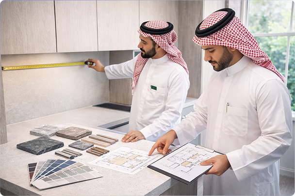 نستخدم خامات عالية الجودة لنقدم لك تصميمًا يجمع بين الفخامة والعملية مع تنفيذ دقيق يهتم بأدق التفاصيل