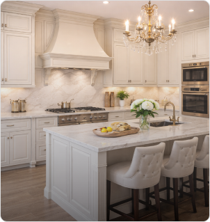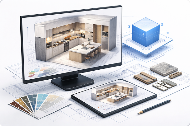 نمنحك تصورًا كاملاً لمطبخك قبل التنفيذ من خلال تصميم ثلاثي الأبعاد عالي الدقة، يوضح توزيع المساحات، الألوان، والخامات بشكل واقعي. يمكنك مراجعة التصميم وتعديله حتى الوصول للشكل المثالي الذي يناسب احتياجاتك وذوقك قبل بدء التنفيذ.