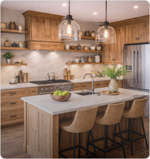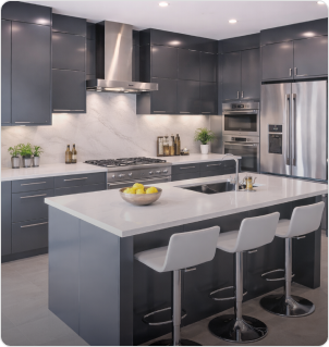 نحن فريق متخصص في تصميم وتنفيذ المطابخ العصرية، ندمج بين الجودة العالية والتصميم الذكي لنقدم لك تجربة عملية تناسب أسلوب حياتك
